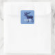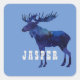 Square sticker has moose silhouette with celestial sky fill and customizable text on light blue background
