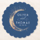 Celestial Navy Blue and Gold Stars Moon Wedding Paper Coaster