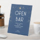 Celestial blue and gold wedding pedestal sign "Open Bar"