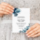 Plain white envelopes are included with paper invitations and will come to fit the invitation size you select. If you don’t need the envelopes, you may choose to not receive them by selecting the dropdown below "Envelopes" and choosing "None." If you’d like to have a design on your envelopes, you can browse all of these available envelopes to find the design that complements your Celestial Navy Blue Floral Wedding Invitation.