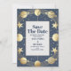 Printed on high-quality, textured cardstock, this save-the-date card has a rich, tactile feel that adds to its elegance. The back of the card features a continuation of the starry sky pattern or a simple solid color that complements the front design, tying the entire piece together.