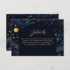 Complete your wedding stationery suite with this elegant celestial wedding details card, designed with a deep navy blue background, refined gold celestial accents, and a coordinating monogram on the back for a polished and cohesive look.