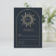 This design features navy blue and golden celestial art including bohemian linear wavy sun monogram personalized wedding response card. This product can be easily personalized. If you need help with the customization of the product or need matching products kindly please contact me via Zazzle.