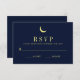 This design features minimal elegant personalized navy blue celestial wedding response card with classic star dust and crescent moon golden mystical symbols. This card is easily editable. If you need help with the customization of this card or you need more matching products for this collection kindly message me via Zazzle.