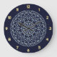 A lace-like concentric circle mandala in light blue with bright blue and gold star-like dots spangled among the layers makes for a fun, design that brings to mind a starry night sky.