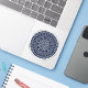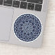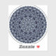 A lace-like concentric circle mandala in light blue with bright blue and gold star-like dots spangled among the layers makes for a fun, design that brings to mind a starry night sky.