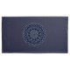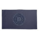 A lace-like concentric circle mandala in light blue with bright blue and gold star-like dots spangled among the layers makes for a fun, design that brings to mind a starry night sky.