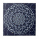 A lace-like concentric circle mandala in light blue with bright blue and gold star-like dots spangled among the layers makes for a fun, design that brings to mind a starry night sky. This tile can be framed to create a trivet or placed inside a wooden gift box. Tiles without a frame will also fit inside the gift box to create a matching set.