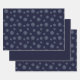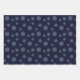 A lace-like concentric circle mandala in light blue with bright blue and gold star-like dots spangled among the layers makes for a fun, design that brings to mind a starry night sky. Two sheets in this set feature the mandala scattered across a deep blue background, while the third sheet features a pattern of faded polka dots on the same blue background to give you options and variety for your gift wrapping or DIY projects.
