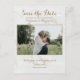 Beautiful personalizable Save the Date photo Postcard announcement with celestial white & faux gold glitter textured effect background, & decorative font caramel typography details which you can customize easily with your own text. A unique & elegant design for the modern couple who likes a touch of romance, but with a modern & original approach. Complete Wedding Invitation Suite available on email request to: juneleijon7@gmail.com