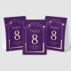 Celestial Purple Gold Sun Moon Stars Wedding Table Numbers Table Tent Sign features a gold sun, moon and stars frame on a purple background. Inside is your custom table number information. Designed for you by ©2022 Evco Studio www.zazzle.com/store/evcostudio