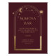 Celestial Red Gold Mimosa Bar Sun Moon Stars Astronomy Celestial Cosmic Galaxy Space Birthday Party Event Poster features a gold sun, moon and stars frame on a deep pink-red background. Inside is your custom text. Designed for you by ©2024 Evco Studio www.zazzle.com/store/evcostudio