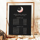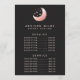 Celestial Rose Gold Crescent Moon Service Price Menu. This elegant modern trendy business design features a moon and stars on a solid black background.