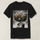 This sublimation design features a crisp, manga-style image of an Afro-haired woman carved from white taupe-grey marble, adorned with golden streaks. Her hair is transformed into an ethereal cluster of mustard, terracotta, and turquoise cumulus clouds infused with streaks of silver lightning. The woman is depicted wearing a raw silk cream tank top, positioned firmly on the rule of thirds line. She stands against a radiant galaxy-themed background, symbolizing serenity and the vastness of the universe.