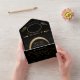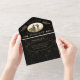 Celestial Shooting Star Eclipse Moon Photo Wedding All in One Invitations that include the wedding info, photo of the couple and RSVP, meal choices postcard that your guests tear off and and send. Envelopes are not needed. These feature faux gold moon, stars and a photo that you change out to your photo. Sepia tone will be added automatically. Please use a photo in the horizontal position with the couple centered for best results. Great for a evening, dark and moody, mystical, gothic or a moonlight wedding!