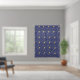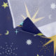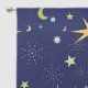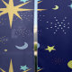 Pretty midnight blue curtain with a pattern of stars and moons.