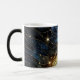 Explore the universe with this Cosmic Stained Glass Art Mug, a captivating abstract fantasy print that combines the elegance of stained glass with a starry night galaxy, showcasing radiant gold and deep blue tones.
