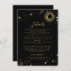 Celestial mystical personalized wedding enclosure card featuring galaxy milky way midnight sky with star dust, crescent moon and other astrological symbols in black and golden colors. This card is easily editable. If you need help with the customization of this card or you need more matching products for this collection kindly message me via Zazzle.