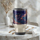 Elevate your daily commute with the sleek and sophisticated Dragon travel mug. Featuring a rubber-lined lid for a secure, spill-resistant seal and an elegant twist-to-sip opening, it’s functional without compromising style. Personalize with your own quote or affirmation to create one-of-a-kind accessory for your morning ritual. The illustration features a celestial starborne dragon with cosmic wings glowing with constellations, and swirling nebula clouds. The shimmering deep blue and purple galaxy background is shimmering with stardust and ethereal light beams in magical atmosphere. The quote - “Where dragons rise, courage follows" can be personalized.
