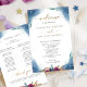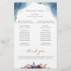 Elegant Wedding program with delicate watercolor stains creating a beautiful celestial scene with dainty stars. Floral element on the bottom and gold modern hand written calligraphy details throughout . Ability to make text changes and adjustments by selecting customize further. Front with wedding ceremony details, back with wedding party names and thank you message for your guests. Elegant modern feel. Part of our "Mystic Garden Celestial" collection with variety of coordinating products available.