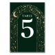 Mystical celestial emerald green and gold wedding table number card