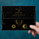 A mystical celestial monogram wedding design in black and gold. A simple tarot style design that uses a stars background with a gold crescent moon, celestial sun and matching heart monogram . An elegant black and gold celestial design with classy script typography. A modern tarot themed wedding invitation envelope design with modern elements. Matching wedding stationery items and other wedding invite formats are also available.