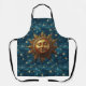Amid a starry celestial background, the serene face of a stylized golden sun.