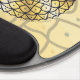 The plastic backing is nice and sturdy. The grippy pads underneath keep the mouse pad where I put it on my table. The pad the mouse sits on is cut well to fit the backing. The wrist pad is perfectly soft, supportive, and thick. I'm left-handed, and this mouse pad works just as well for me as it does for my right-handed friends. I'm the designer of HippieClecticHope products. I'm blown away by how well my intricate fractals turn out on the tangible items in the Zazzle Marketplace. This particular mouse pad ***appears*** like a 3D object... A mathematically-engineered rainbow black opal, inlaid under transparent fabric...