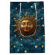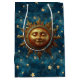 Amid a starry celestial background, the serene face of a stylized golden sun.