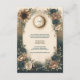 Complement your invitation suite with this celestial themed enclosure card. The design blends a radiant sun and moon medallion with rustic teal and beige florals, ideal for additional details or directions. A perfect match for boho, outdoor, or starlit wedding themes.