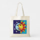 A cool 90’s style vintage inspired celestial themed sun and moon solar lunar vibes nineties aesthetic marker art vintage aesthetic nineties nostalgia spacey groovy vibes art design deluxe carry all canvas tote bag. Get a fun nineties nostalgia tote today.