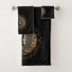 An elegant ancient ethereal sun moon stars towel set that can be customized with your own favorite quote or your name. Black background.