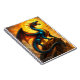 A majestic blue dragon stands atop a rugged mountain peak, wings spread wide against a radiant golden sun halo. The artwork features intricate scales, glowing eyes, and a dramatic sky filled with swirling clouds. Rendered in a vibrant fantasy illustration style, this piece evokes power, mystery, and mythic grandeur, making it a striking and imaginative design.