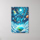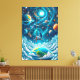Step into a world of wonder with this magical wall art. The image depicts a solitary figure gently swinging high above the clouds, suspended beneath a vibrant cosmic sky. Planets, moons, and swirling nebulae hang like celestial ornaments, creating a breathtaking, dreamlike tableau. With its rich palette of electric blues, deep teals, and fiery oranges, this print captures the ultimate feeling of freedom and boundless imagination. It’s a perfect statement piece for those who seek whimsical fantasy and cosmic inspiration in their home.