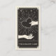 This business card features a tarot card style design in a black and cream colour palette. The illustration shows a manicured hand holding a heart surrounded by twinkling stars. This would be perfect for any Nail technician, hairdresser, salon or beautician who prefers an alternative style business card and wants to make their business card memorable.