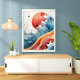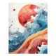 Immerse yourself in the tranquility of the cosmos with this captivating watercolor artwork. A fiery red sun, reminiscent of a celestial body, gracefully meets a swirling ocean of blues and greens, creating a mesmerizing interplay of light and shadow. The abstract design evokes a sense of calm and wonder, making it a perfect addition to any modern interior.