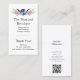 Mystical Celestial Watercolor Moon Phase Waxing, Full and crescent Moon with Pink Roses and Leaves Design. Holistic New Age Healing business cards with QR Code