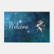 Beautiful vintage heraldry style unicorn illustration set on celestial skies background. Customize with name or other text in white script font.