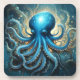 Celestial Waves: The Blue Octopus Fractal Art Beverage Coaster