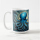 Celestial Waves: The Blue Octopus Fractal Art Coffee Mug