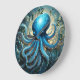 Celestial Waves: The Blue Octopus Fractal Art Large Clock