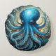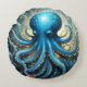Celestial Waves: The Blue Octopus Fractal Art Round Pillow