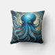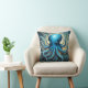 Celestial Waves: The Blue Octopus Fractal Art Throw Pillow