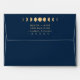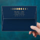 Add a touch of cosmic elegance to your event with our Celestial Wedding envelopes. Immerse yourself in the enchanting simplicity of our design, reflecting the mesmerizing magic of celestial bodies. Our trendy yet timeless design showcases a series of moon phases artistically rendered in gold on a striking navy blue backdrop. This touch of gold adds a hint of warmth and twinkling charm to the cool midnight blue base, further enhancing the inviting allure of the piece. The design maintains a minimalist approach, allowing the celestial elements to truly shine. You can easily personalize to suit your needs, ensuring that each piece echoes your unique style.