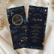 Add a touch of magic to your reception with this celestial-themed wedding menu featuring each guest’s name in elegant script. The deep navy background is adorned with golden stars, moons, and constellations, creating a dreamy night-sky aesthetic. A graceful arch frames the personalized name and menu details in refined serif and calligraphy fonts. Ideal for evening weddings, stargazer celebrations, or astrology-inspired events, this menu doubles as a unique place card and keepsake. Fully editable for guest names and course details.