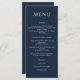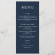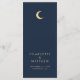 Celestial Wedding Dark Blue Golden Menu Card with a moon shape on the back.