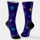 Step into cosmic comfort with the *Celestial Whispers Crew Socks*. Featuring scattered stars in gold, purple, dark blue, and light blue on a rich navy blue background, these socks are a dreamy blend of style and whimsy. Ideal for stargazers, dreamers, or anyone who wants to walk on the celestial side of life.