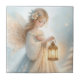 Celestial Winter Angel Lantern of Comfort Ceramic Tile