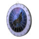Stylish dart board features black wolf silhouette on celestial background. Perfect for man caves and game rooms.