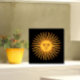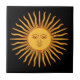 Celestial Yellow Sunshine Face on Black Stylish Ceramic Tile